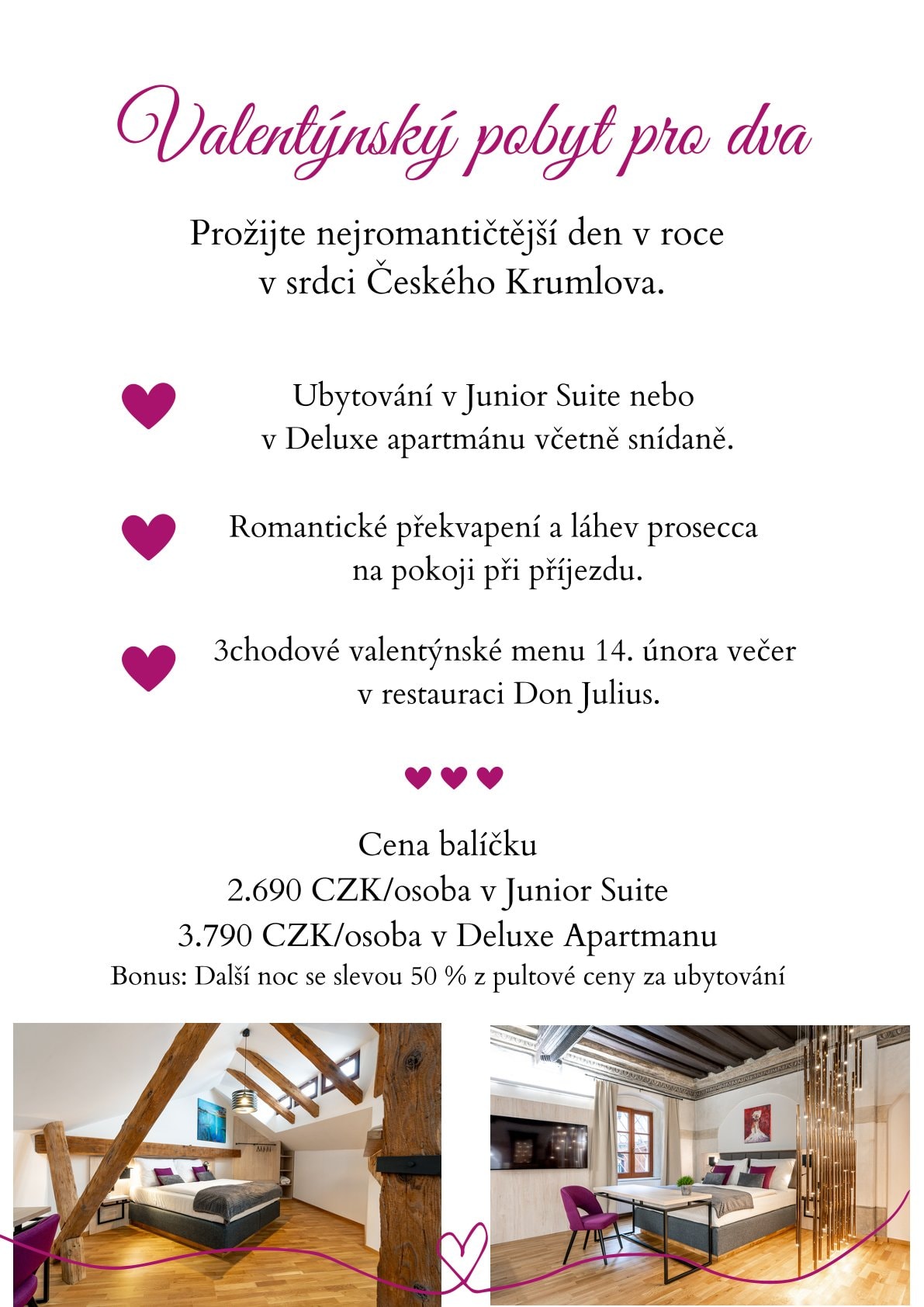 Hlavní budova se 40 pokoji a celkem 100 lůžky a pár kroků vzdálená budova se 6 Deluxe Appartments na hlavním náměstí nabízí perfektní ubytování, které splní každé přání a požadavky i té nejnáročnější klientely.