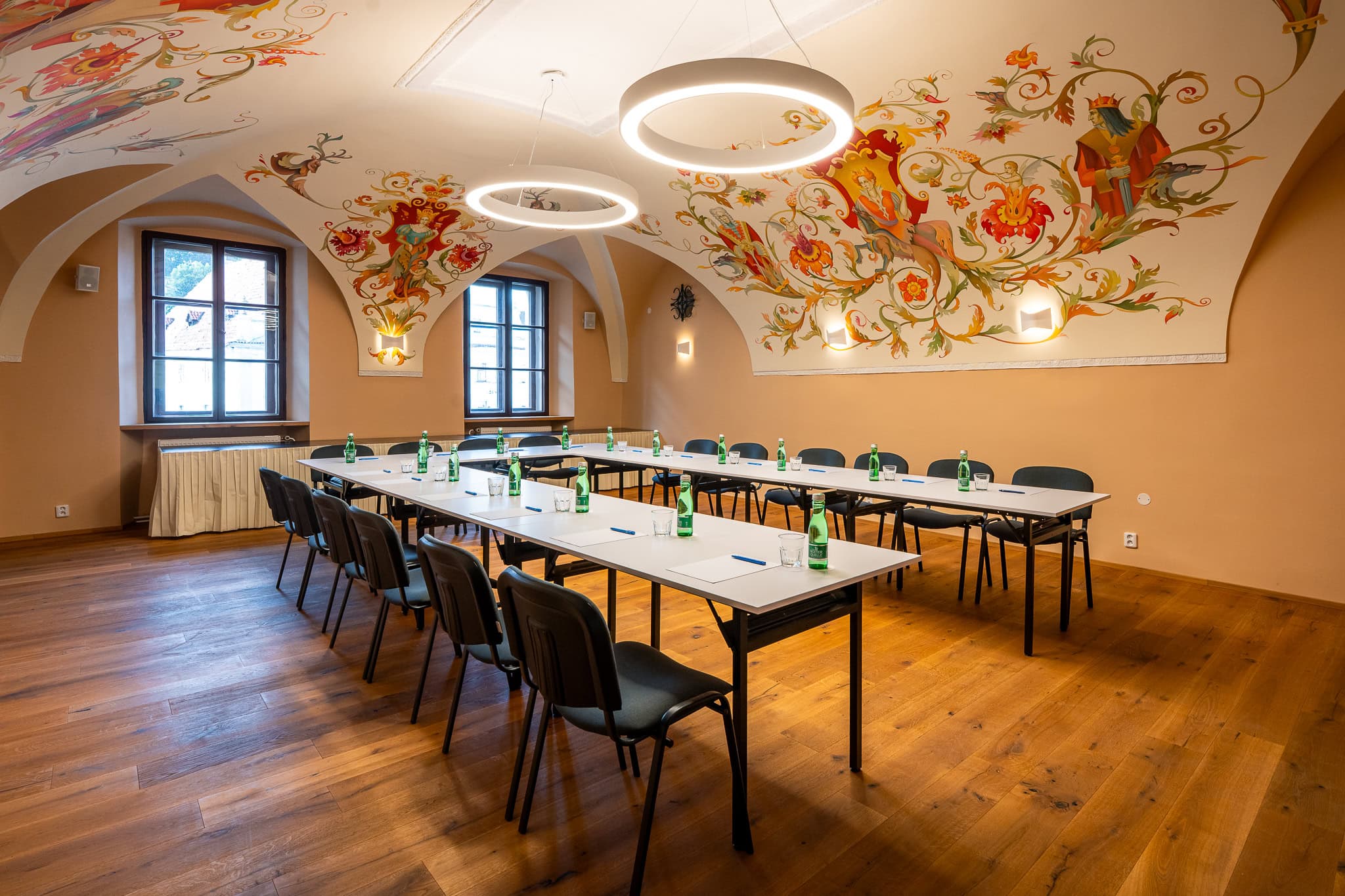 Nur rund 30 Autominuten von der österreichisch-tschechischen Grenze entfernt bietet das Hotel Zlatý anděl in Český Krumlov (Krumau) den idealen Rahmen und Räumlichkeiten für Seminare, Tagungen und Incentives bis zu 150 Personen (2 verbundene Seminarräume für einmal max. 60 Personen und einmal max. 90 Personen).
