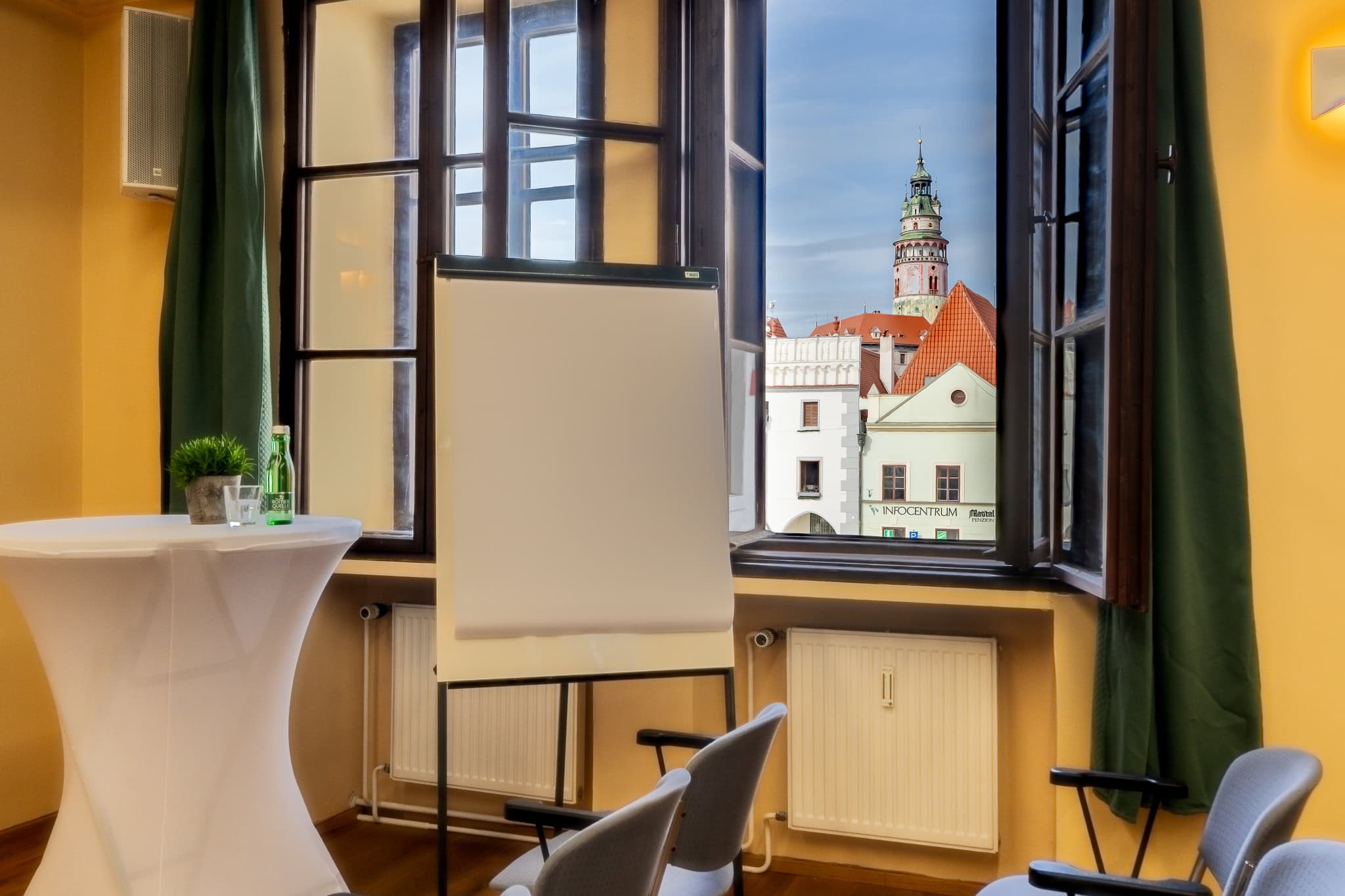 The hotel is located in the heart of the picturesque UNESCO World Heritage Site of Český Krumlov. Surrounded by the historic backdrop and green landscape of South Bohemia, the Hotel Zlatý anděl offers well-equipped seminar rooms with a unique ambience, 50 rooms, its own car park, a shuttle service, a restaurant, a café and a hotel bar.